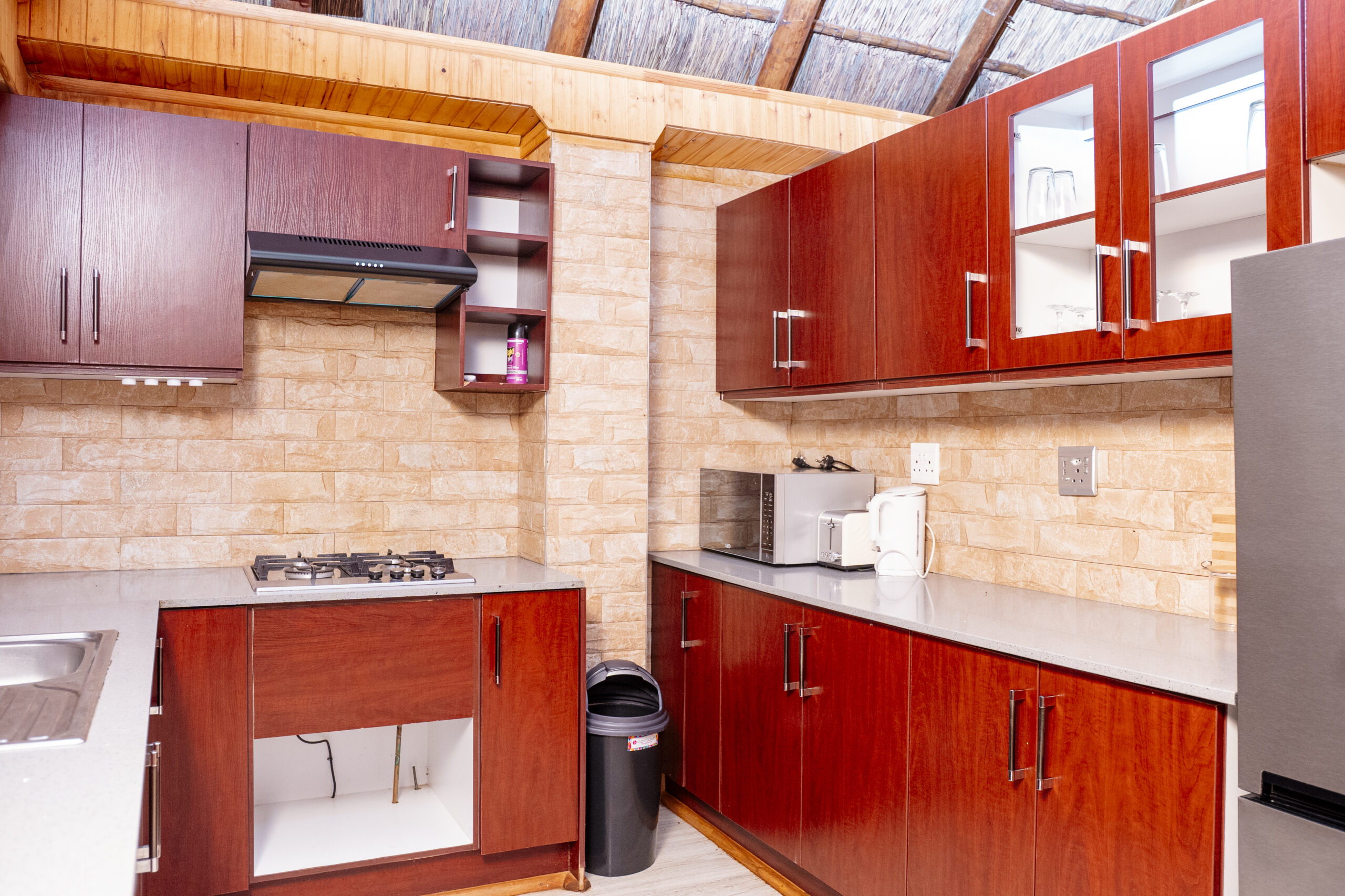 This lovely 3 bedrooms chalet hosts up to 6 guests. Perfect for a small crowd that want to experience the Bushveld as a group in a spacious environment. If you want peace and tranquillity this is the place to be. The Cape Town chalet is equipped with a private lounge, kitchen,Wifi and DStv. The kitchen is equipped with a gas stove, fridge, and braai area.